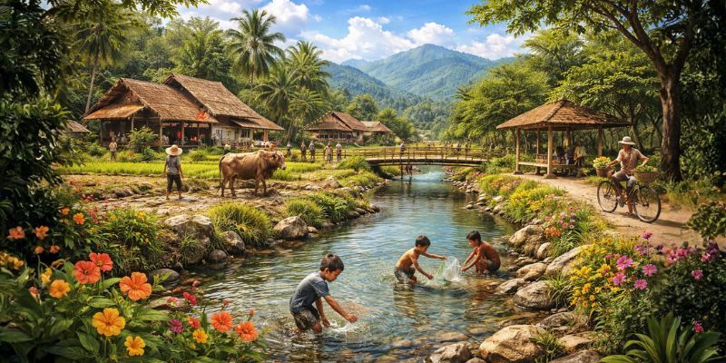 Ilustrasi desa hijau. (Kecerdasan Buatan)