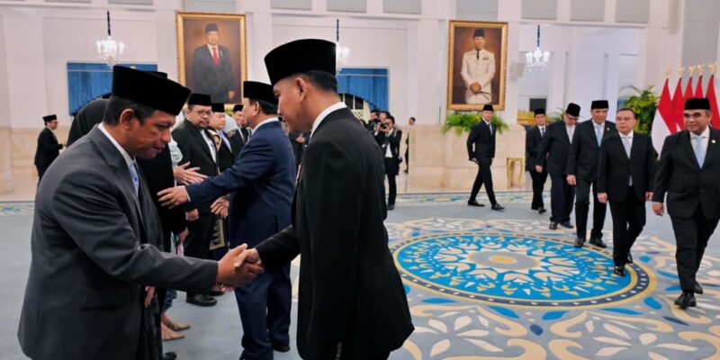 Desanesia– Wakil Presiden (Wapres) Gibran Rakabuming mendampingi Presiden Prabowo Subianto dalam pelantikan sejumlah pejabat negara di Istana Negara, Jakarta, Senin (27/4). Pelantikan ini merupakan bagian dari penguatan struktur pemerintahan dalam mendukung pelaksanaan program strategis nasional.