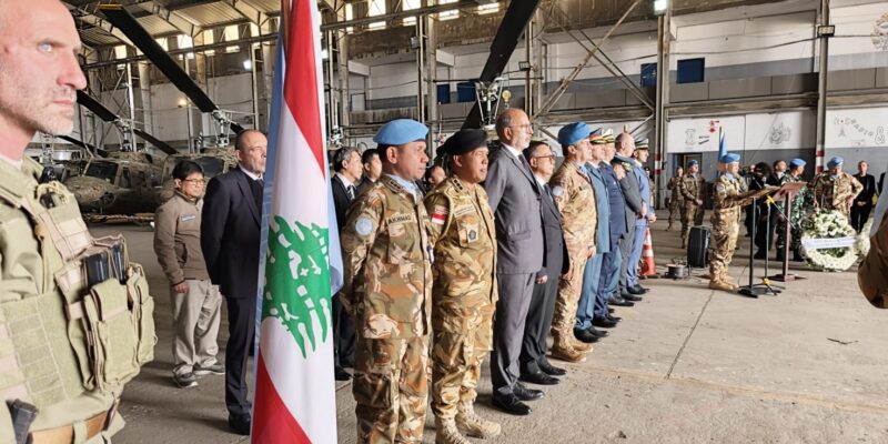 Upacara pelepasan ketiga jenazah sebagai penghomatan di Bandara Internasional Rafiq Hariri di Beirut, Lebanon dan dipimpin langsung oleh Force Comander UNIFIL, Jumat(3/4).